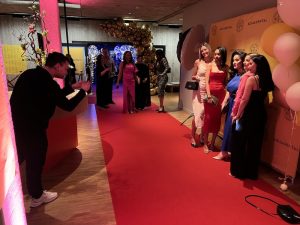 Röda mattan – Ett storslaget välkomnande med fotovägg och fördrink.